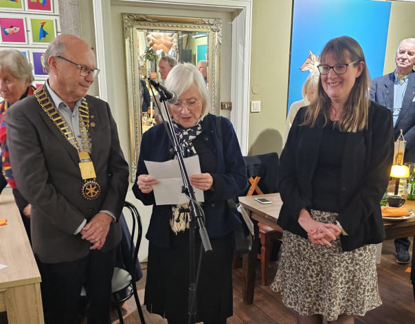 Stjørdal Rotaryklubb tildeler utmerkelsen Paul Harris Fellow til operasjef Lars Eggen for hans samfunnsgagnlige arbeid. Opptak av to nye medlemmer, Jennifer Frances Reeves og Gro Anita Westgaard Håpnes. Vi ønsker de hjertelig velkommen i klubben!