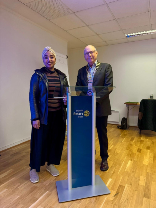 Isra Mahmoud og President Terje Lauten